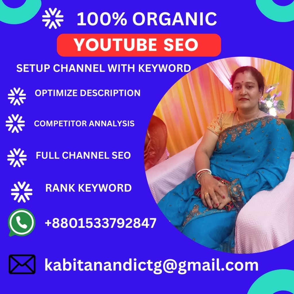 A warm welcome to the best YouTube video S.E.O & Channel Optimization Ranking service .To grow and optimize your video. I will use white hat SEO methods suggested by the latest YT Algorithm. Doing S.E.O. is the perfect way to do video making and ranking. So that people can watch them on YT every feature. I will provide you with the best S.E.O